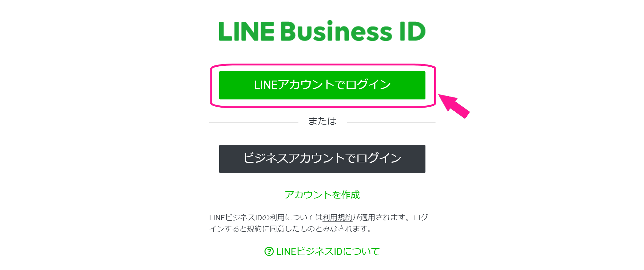 最初はビジネスアカウントを持っていないので、「LINEアカウントでログイン」をクリックします。