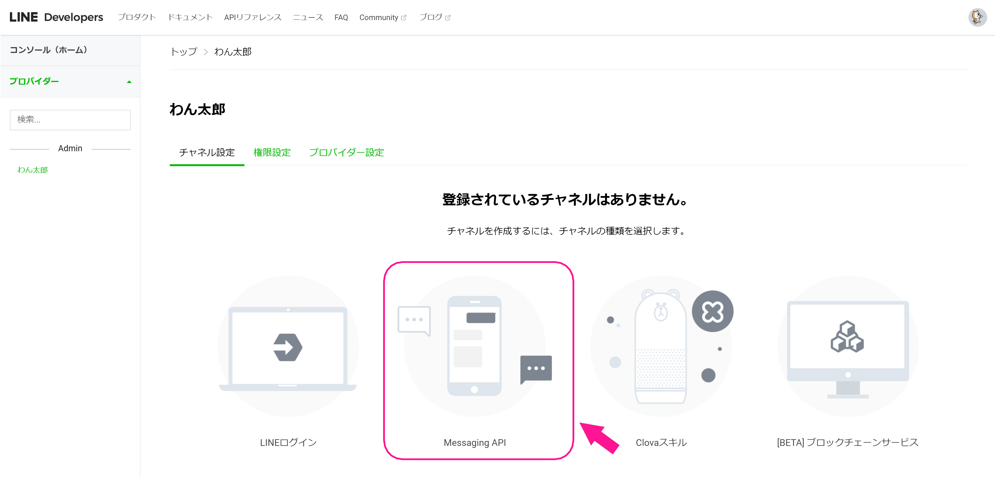 これからMessaging APIのチャネル(APIとやりとりするための設定)を作成していくよ。
